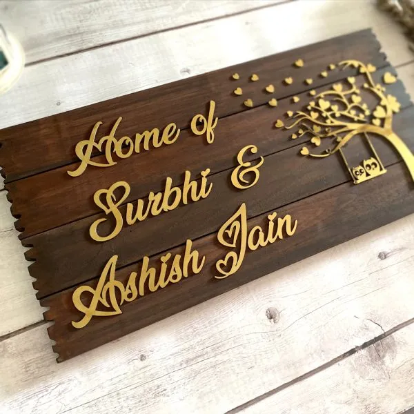 Rustic Wooden Plank Couple Name Plate
